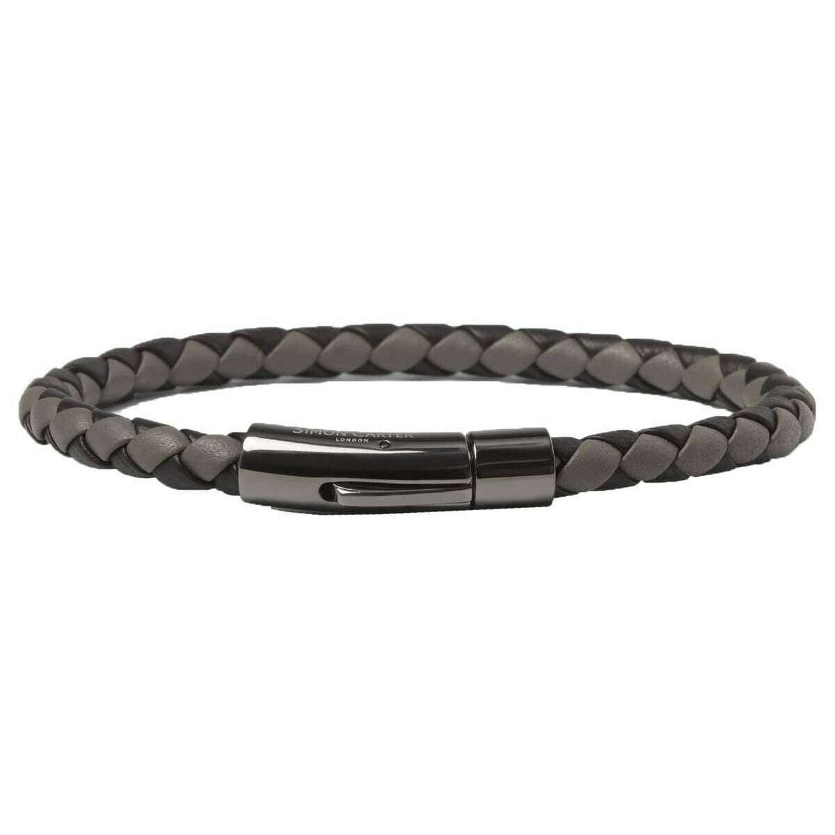 This men's newquay bracelet has been made from stainless steel and leather, featured in a grey colour and is from the brand Simon Carter. All the bracelets come complete with simon carter packaging. The Simon Carter Newquay Bracelet - Grey/Silver is perfect for casual everyday wear. This bracelet features a trendy grey woven design. A lobster claw clasp ensures this bracelet stays firmly on your wrist!