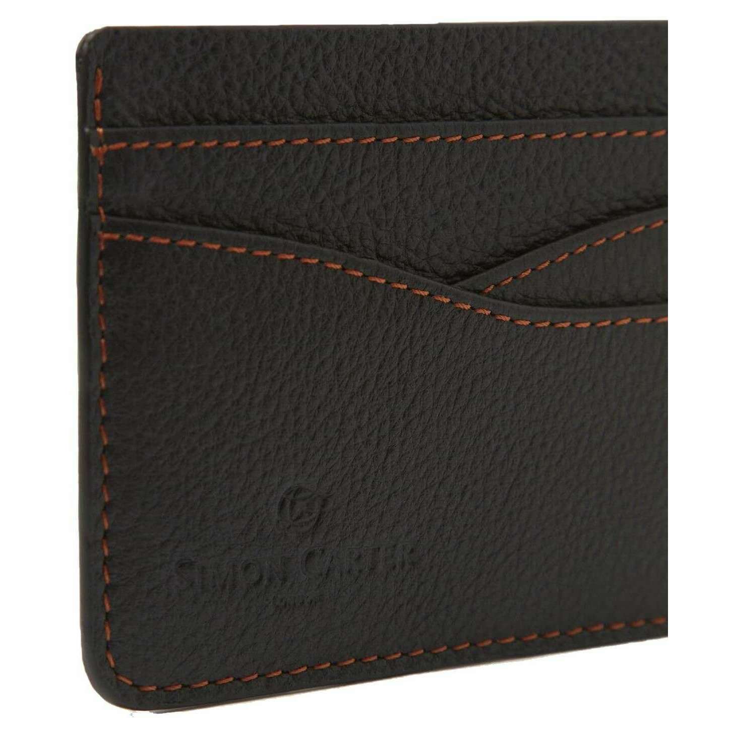 Manufactured from 100% leather is this black men's wave credit card holder by the designer Simon Carter. All the wallets come complete with simon carter packaging. The Simon Carter Wave Credit Card Holder - Black is perfect for everyday use! This black and brown wallet features a unique wave design, three card holders and paisley lining inside. This wallet makes for a perfect gift for any occasion!