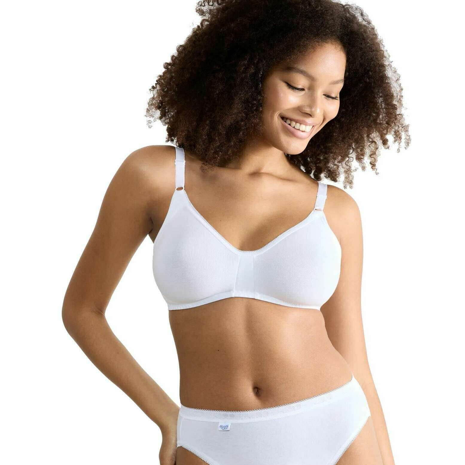 Introducing this women's basic+ non-wired bra by Sloggi, it is manufactured from 82% cotton and 18% elastane in a white colour. Also the white underwear is designed in a plain pattern, It is recommended to machine washable at 60degrees to keep this underwear in good condition. All the underwear comes complete with a sloggi presentation box. The Sloggi Basic+ Non-Wired Bra - White is a must-have for women looking for ultra comfort and luxury. This bra has been crafted from high-quality organic cotton that is made to last whilst upholding the soft feel and elasticity. The wireless bottom, medium support, hook and eye fastening and adjustable wider straps has been carefully designed to ensure a comfortable fit for an everyday wear.