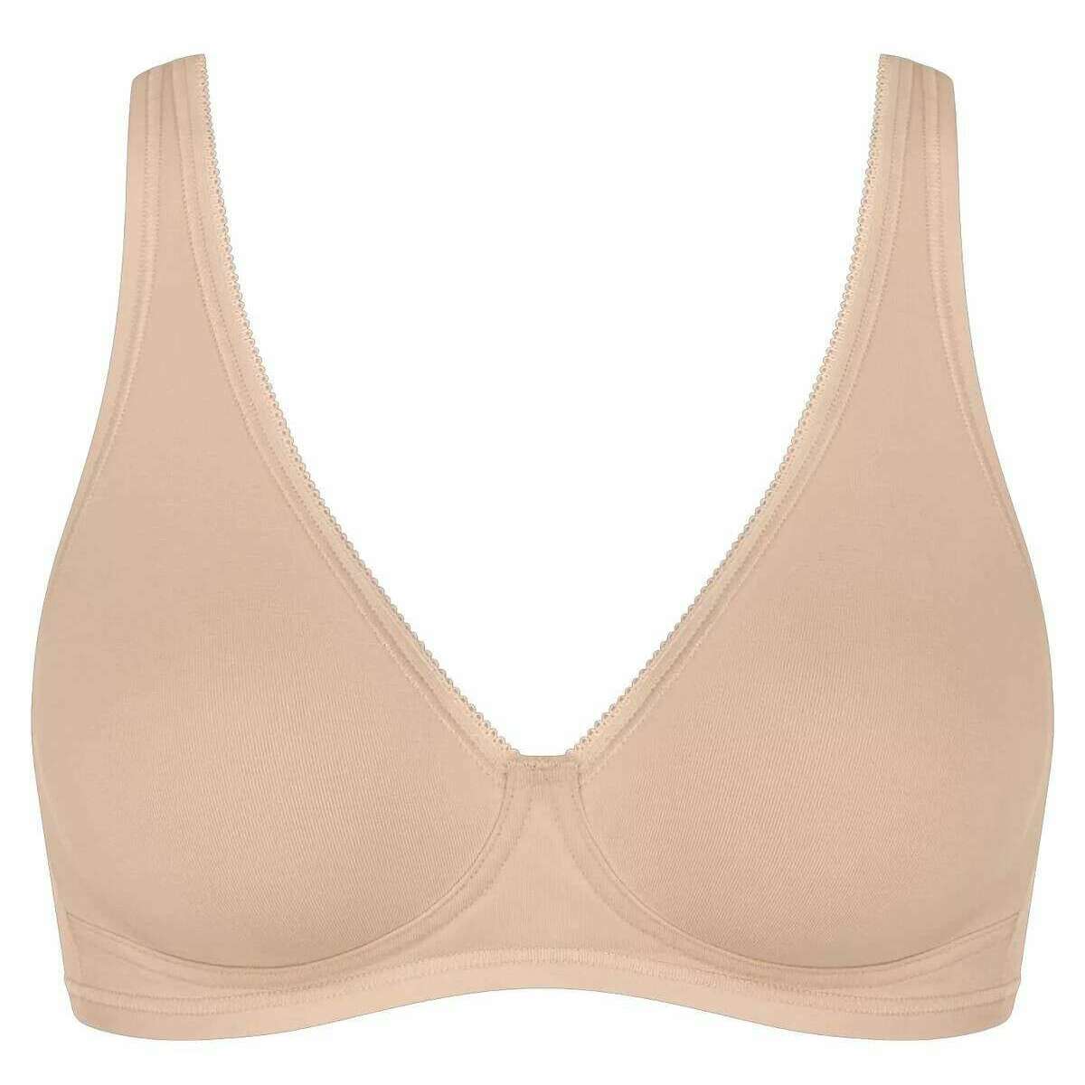 This women's basic+ soft bra by the brand Sloggi is made from 80% cotton, 18% elastane and 2% polyamide and is showcased in beige. Also the skin beige underwear is designed in a plain pattern, It is recommended to machine wash at 40 degrees to keep this underwear in good condition. All the underwear comes complete with sloggi packaging. The Sloggi Basic+ Soft Bra - Skin Beige is a must-have for women looking for ultra comfort and luxury. This bra has been crafted from high-quality organic cotton that is made to last whilst upholding the soft feel and elasticity. The non-padded moulded cups, medium support and adjustable wider straps has been carefully designed to ensure a comfortable fit for an everyday wear, and the seamless fit gives an invisible look under any outfit.
