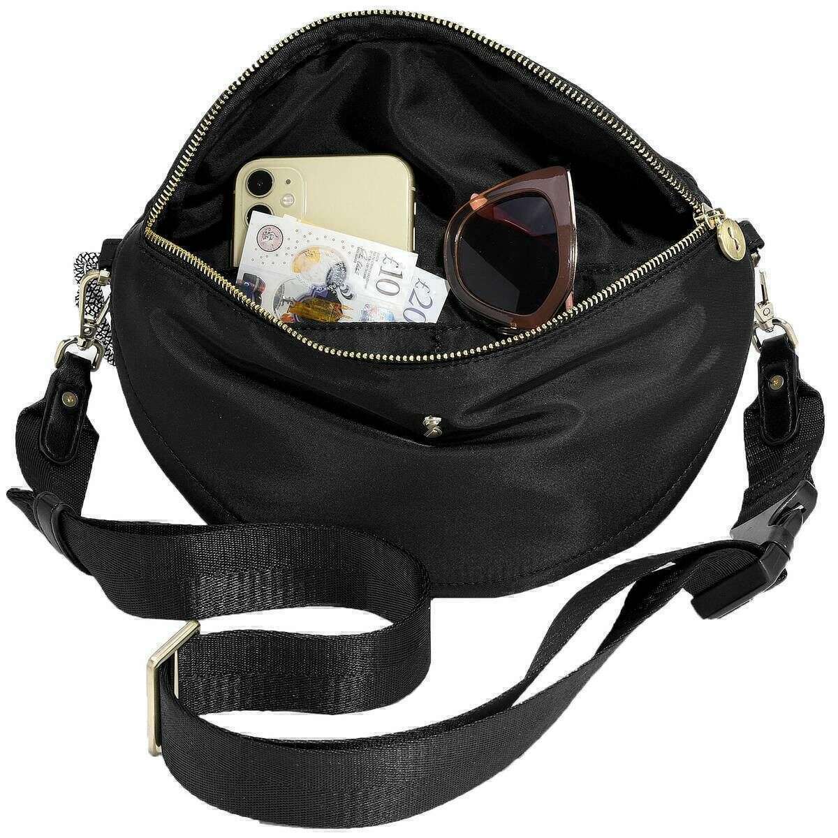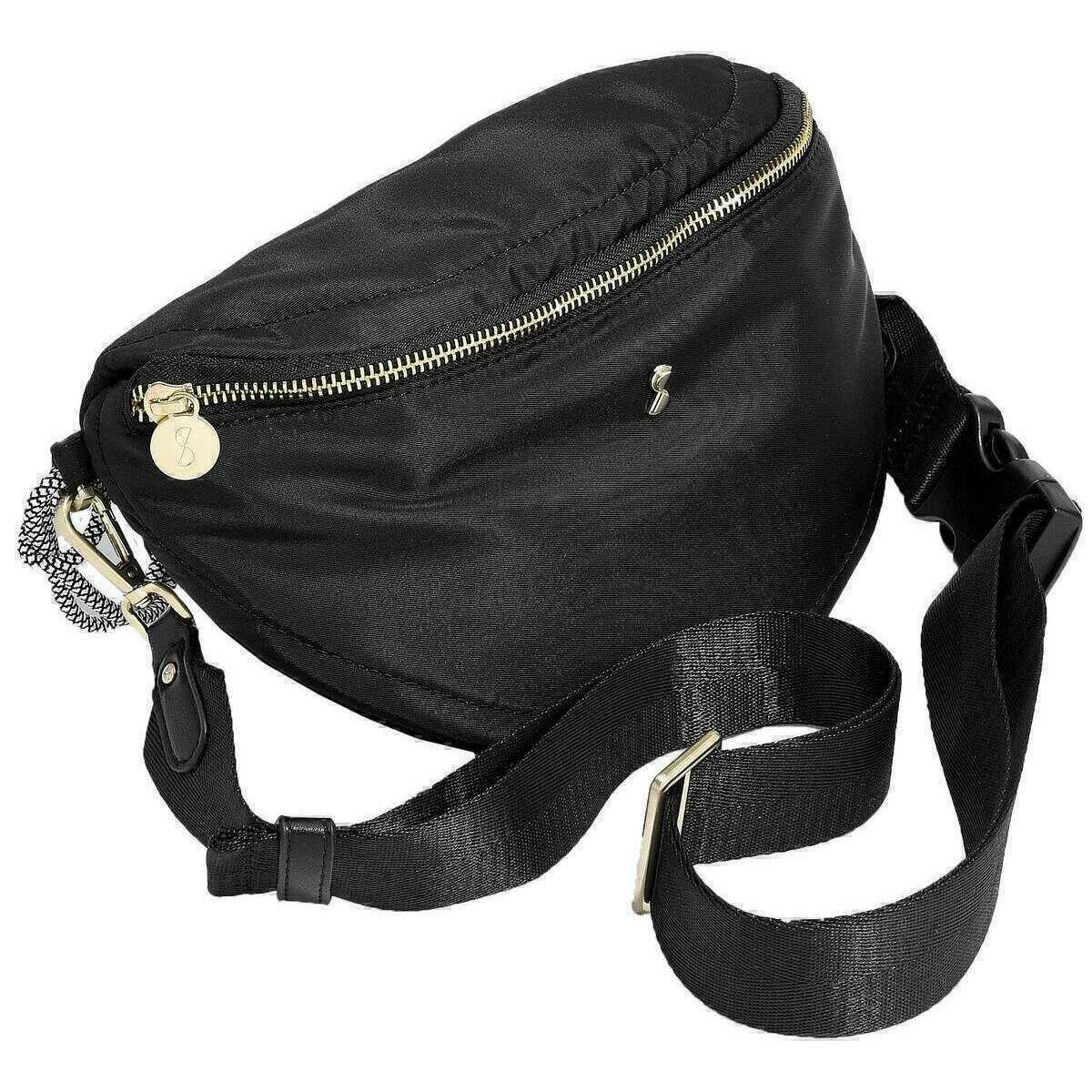 Manufactured from recycled nylon is this black women's bum bag by the designer Stackers. It measures 18cm(height) x 27cm(width) x 9cm(depth). All the bags come complete in stackers packaging. The Stackers Bum Bag - Black is a two in one bum and crossbody bag with the adjustable detachable strap, great for all on the go activities. Perfect for everyday use due to the great large capacity and organisation with its multiple pockets is a must-have bag that will match all casual outfits. The included detachable purse is the perfect size not taking up a lot of space whilst and holding your cards, cash and change.
