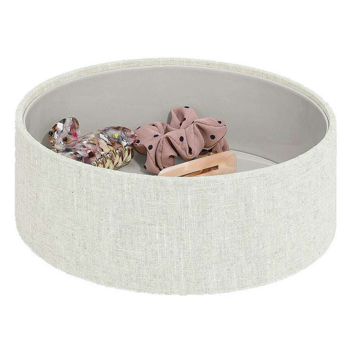 Introducing this women's rotating cosmetic caddy by Stackers, it is manufactured from faux leather and linen in a oatmeal beige/linen beige colour. It measures 25cm(height) x 21.5cm(width) x 21.5cm(depth). All the makeup organisers come complete with stackers packaging. The Stackers Rotating Cosmetic Caddy - Oatmeal Beige/Linen Beige features a rotating design. This beautiful linen cosmetic caddy comes with multiple layers of storage. Perfect for storing your skin care and make up whilst keeping your space tidy!