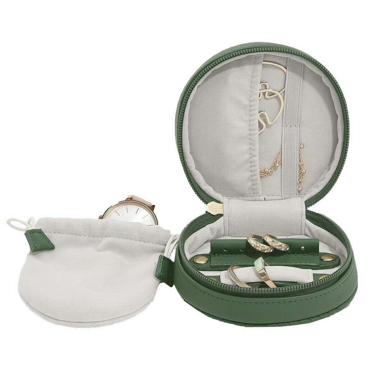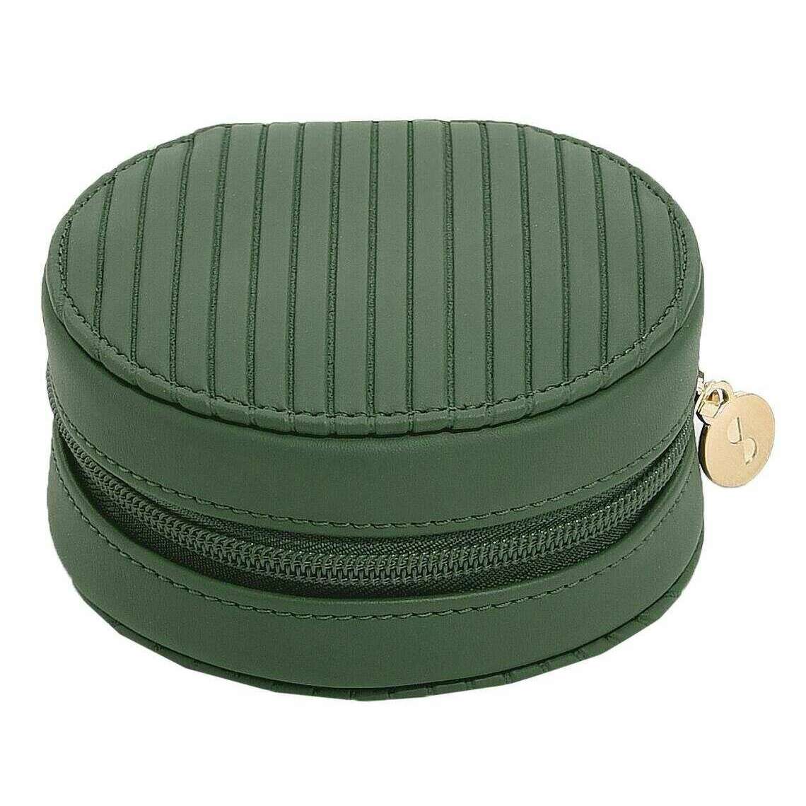 Designer Stackers has brought you this women's faux leather and velvet jewellery box using emerald green tones. It measures 5.5cm(height) x 11.5cm(width) x 11.8cm(depth). All the jewellery boxes come complete with stackers packaging. The Stackers Round Travel Jewellery Box - Emerald Green is perfect for on the go use. This green travel jewellery box features removable ring and earring holders, as well as an additional pouch for bigger pieces of jewellery. Complete with a zip closure for added security.