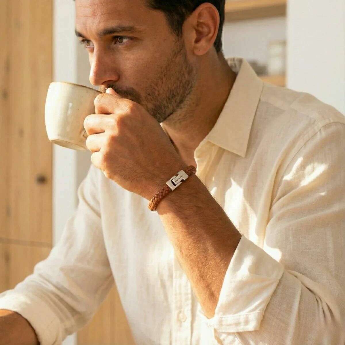 Designer Steel & Barnett has brought you this men's 100% nappa leather and stainless steel bracelet using peanut tan tones. All the bracelets come complete with steel & barnett packaging. The Steel & Barnett Archie Braided Leather Bracelet - Peanut Tan embodies the perfect balance of simplicity and elegance. Expertly hand crafted from genuine Nappa leather, its smooth 8mm band delivers a clean, minimalist aesthetic suitable for any style. The design is elevated by a signature brushed silver clasp, finely engraved with the STEEL & BARNETT logo, offering a subtle touch of distinction. Built for longevity, the bracelet features a high?grade 316L stainless steel clasp, celebrated for its durability and corrosion resistance. Its magnetic fastening ensures effortless wear, providing a secure and comfortable fit throughout the day. Versatile and refined, the Archie transitions seamlessly from formal occasions to casual settings, adding a layer of understated sophistication to every outfit.