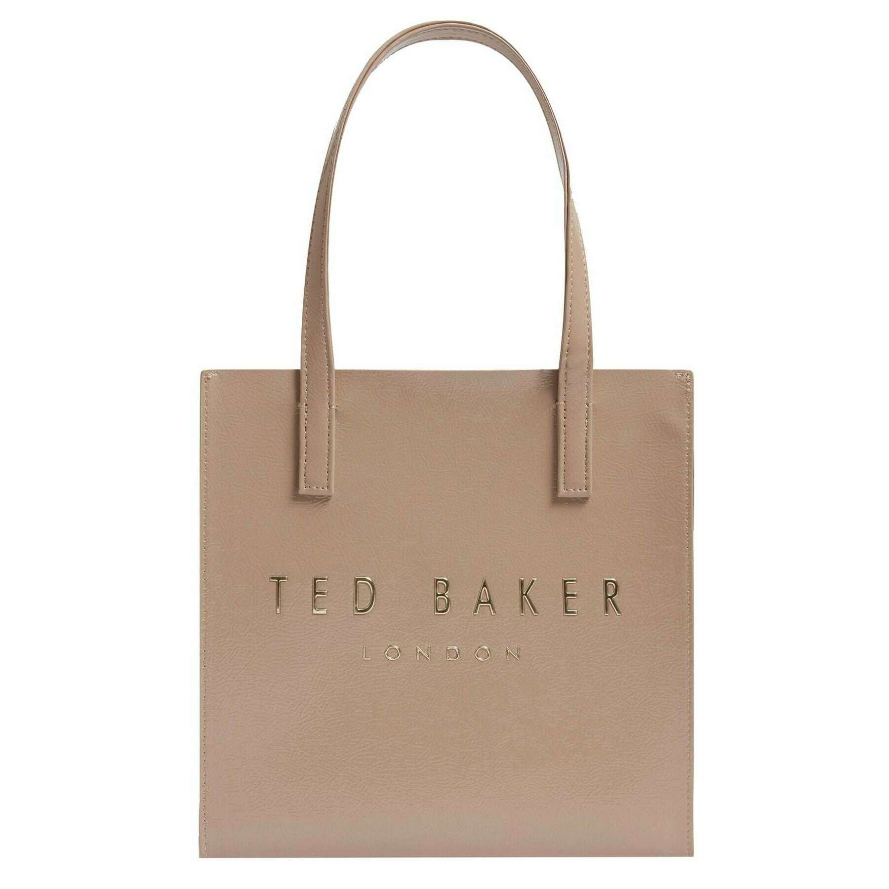 This women's crinion crinkle small tote bag has been made from 100% polyurethane, featured in a beige colour and is from the brand Ted Baker. It measures 24.5cm(height) x 25.5cm(width) x 5.5cm(depth). All the bags come complete with ted baker packaging. The Ted Baker Crinion Crinkle Small Tote Bag - Stone Beige offers a sophisticated choice, ideal for casual and dressy occasions. Simplistic yet elegant this small tote bag is a practical choice, giving you plenty of space to hold your everyday belongings. The stylish contrasting Ted Baker branding adds a special detail enhancing the style of the bag. This simple and trendy design will make a great addition to any outfit.