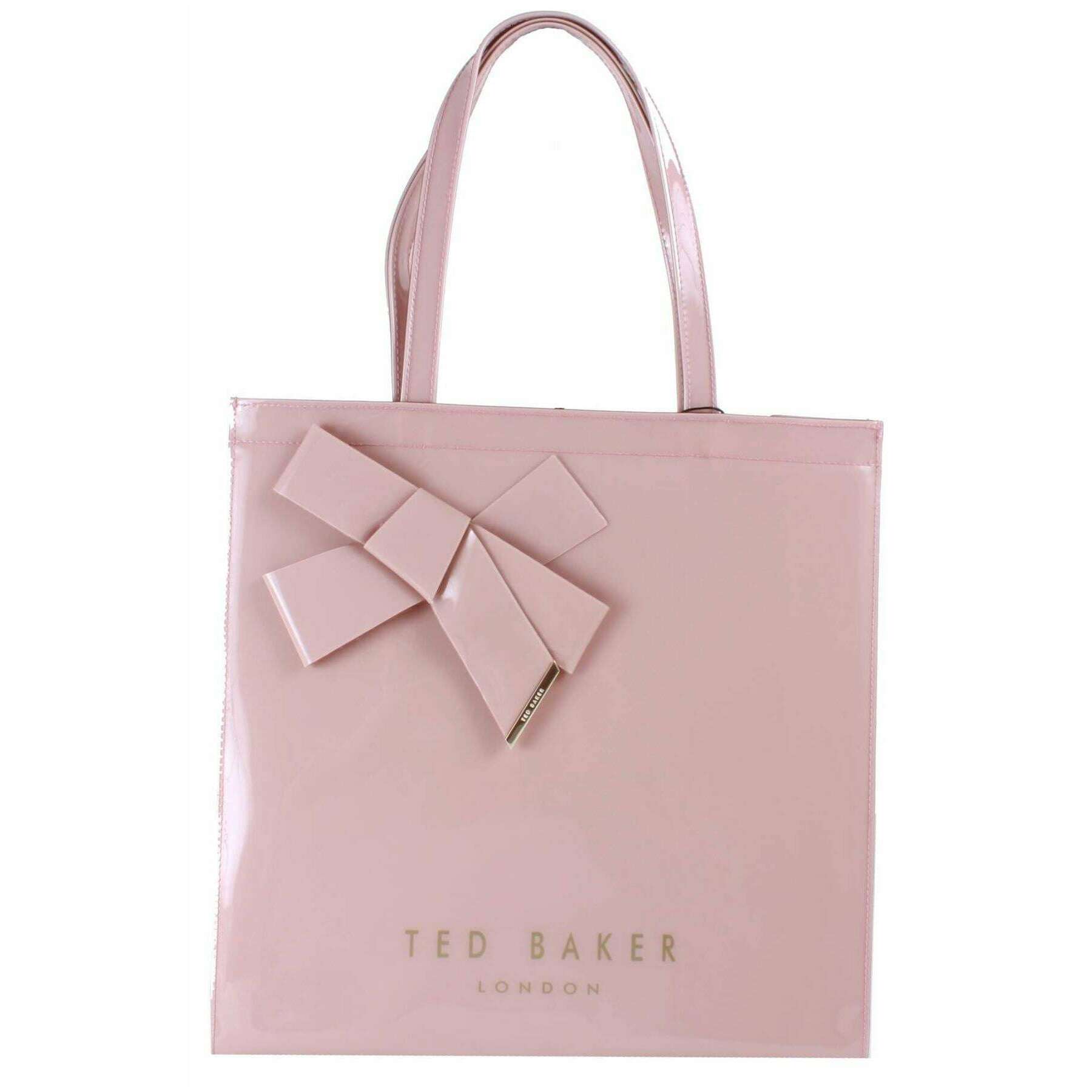 Introducing this women's niconna bow detail large icon bag by Ted Baker, it is manufactured from 100% pvc in a pink colour. It measures 37cm(height) x 37cm(width) x 7cm(depth). All the bags come complete with ted baker packaging. The Ted Baker Niconna Bow Detail Large Icon Bag - Pink is a simplistic yet stylish piece, perfect if you are looking for something a little different with its gorgeous shiny finish. Inside is a single compartment which will fit your everyday essentials, and the external bow detail gives it modern charm. You cand find branding throughout so make this a companion you do not want to leave the house without.