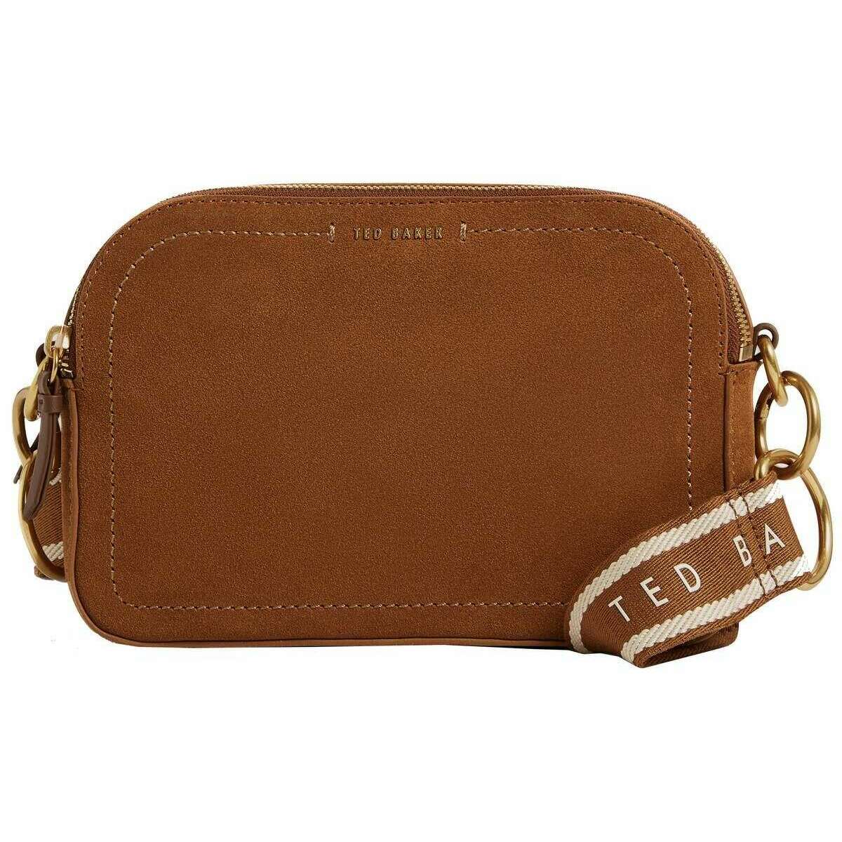 Using brown 100% suede leather, this shayane suede camera bag by Ted Baker is perfect for women and a must have. It measures 15cm(height) x 22cm(width) x 5cm(depth). All the bags come complete with ted baker packaging. The Ted Baker Shayane Suede Camera Bag - Brown has been beautifully crafted to blend both luxury, practicality and, of course, the signature elements that Ted Baker offer. This compact crossbody bag will be the foundation of your day-to-day doings or will accompany you on an evening of wining and dining, she can do both. The Shayane features two interchangeable straps which will change up the look and feel of the bag. One being a more casual webbing strap, while the other is a more polished choice. Inside includes a dual zipped main section which gives you supreme organisation for your valuables, allowing you the segregate, making things easier when on the move.