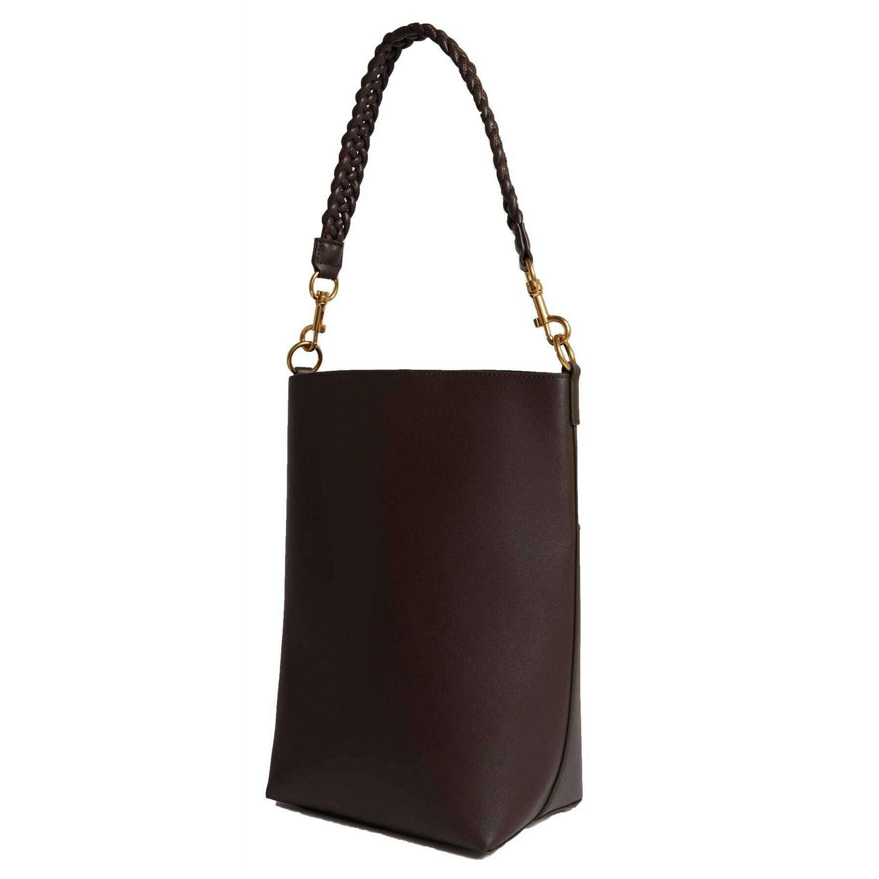 This women's wannda plaited handle elongated leather bucket bag has been made from 100% bovine leather shell, featured in a brown colour and is from the brand Ted Baker. It measures 30cm(height) x 22.5cm(width) x 13cm(depth). All the bags come complete with ted baker packaging. The Ted Baker Wannda Plaited Handle Elongated Leather Bucket Bag - Chocolate Brown is a wardrobe essential for everyday use if you re going for a casual but sophisticated look. This genuine leather, chocolate coloured bag provides lots of space with an extra pocket on the outside of the bag and is easily accessible with a magnetic closing, plus two different handles for multiple looks. Completing this bag is the subtle gold Ted Baker branding on the top of bag.
