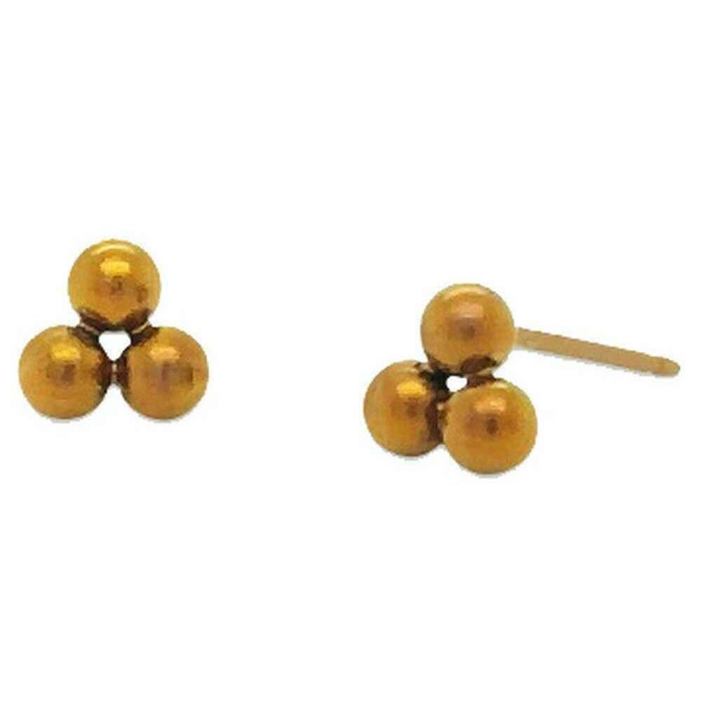 Ti2 Titanium Small Triple Bead Stud Earrings - Tan