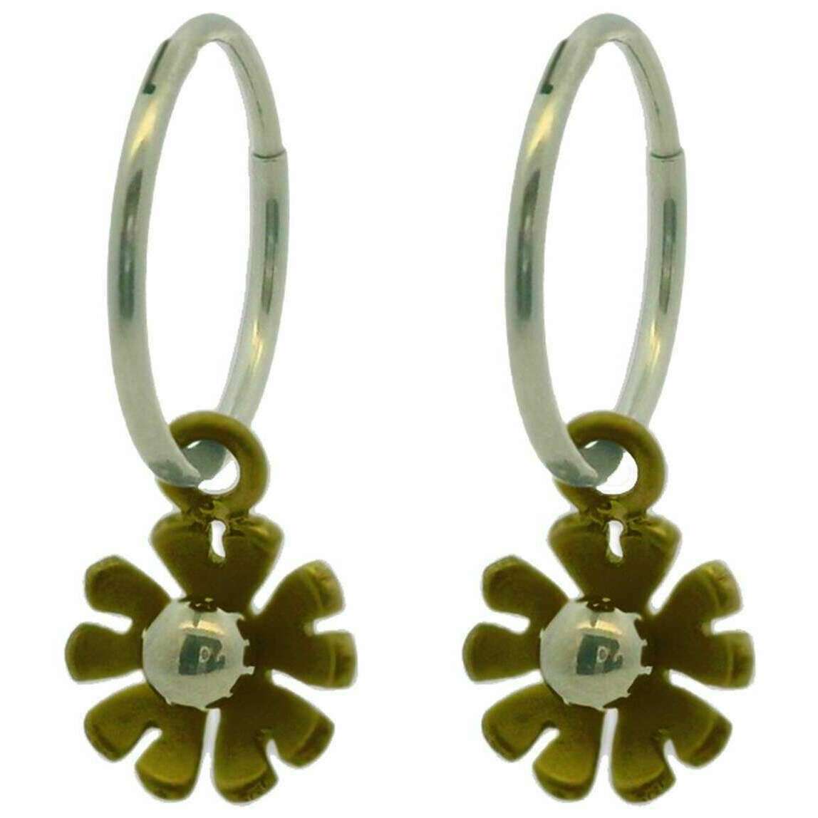 Ti2 Titanium Ten Petal Flower Charm Hoop Earrings - Tan