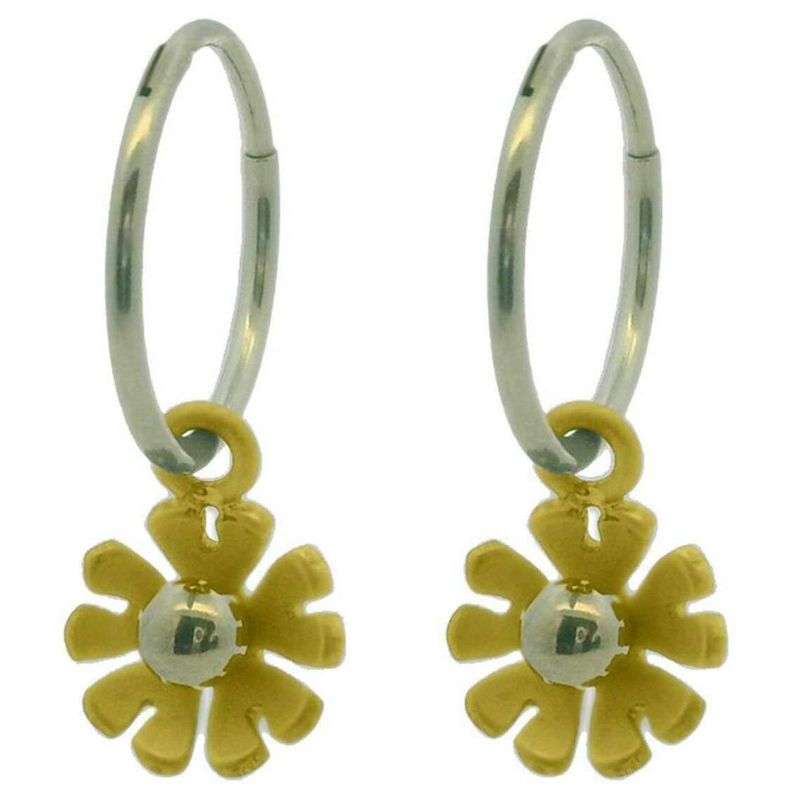Ti2 Titanium Ten Petal Flower Charm Hoop Earrings - Yellow