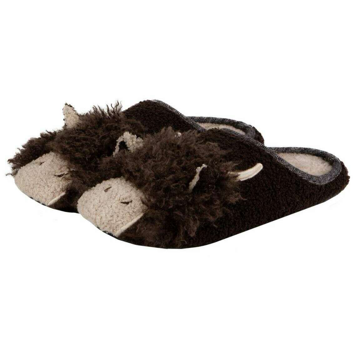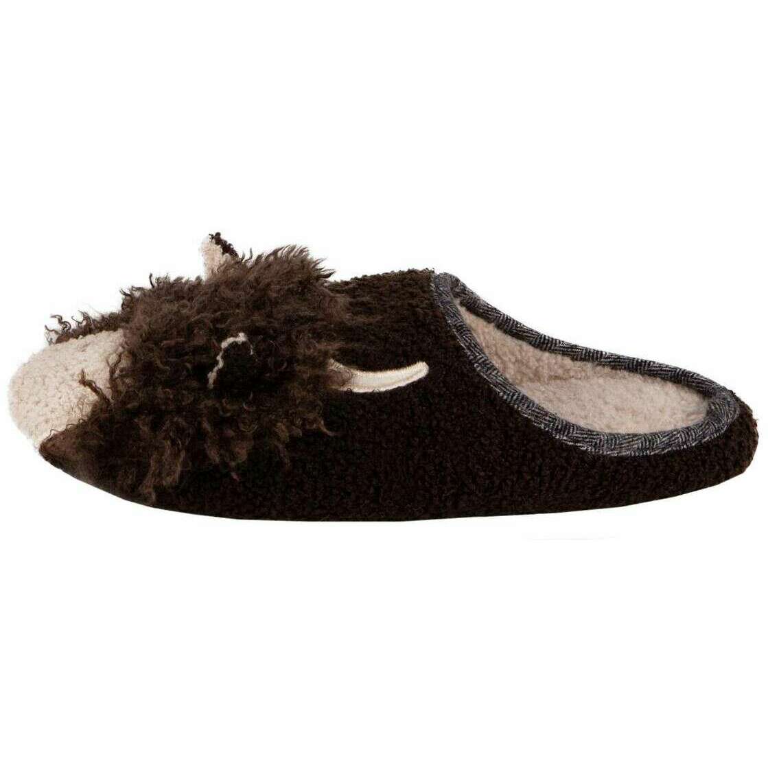 Manufactured from 100% polyester and textile tpr outsole are these brown men's novelty applique mule slippers by the designer Totes Toasties. Also the brown slippers are designed in a plain pattern, It is recommended to hand wash only to keep these slippers in good condition. All the slippers come complete with totes toasties packaging. The Totes Toasties Novelty Applique Mule Slippers - Brown features a classic and well-loved design with a Highland cow twist with its embroidered horns and nose and fluffy faux fur. These slippers have a soft and warm sherpa lining keeping your feet nice and toasty whilst roaming around the house with added memory foam and a durable sole for comfort and support. The slide on mule design allows for easy removal when wanting to let your feet breathe. Make these your winter staple!