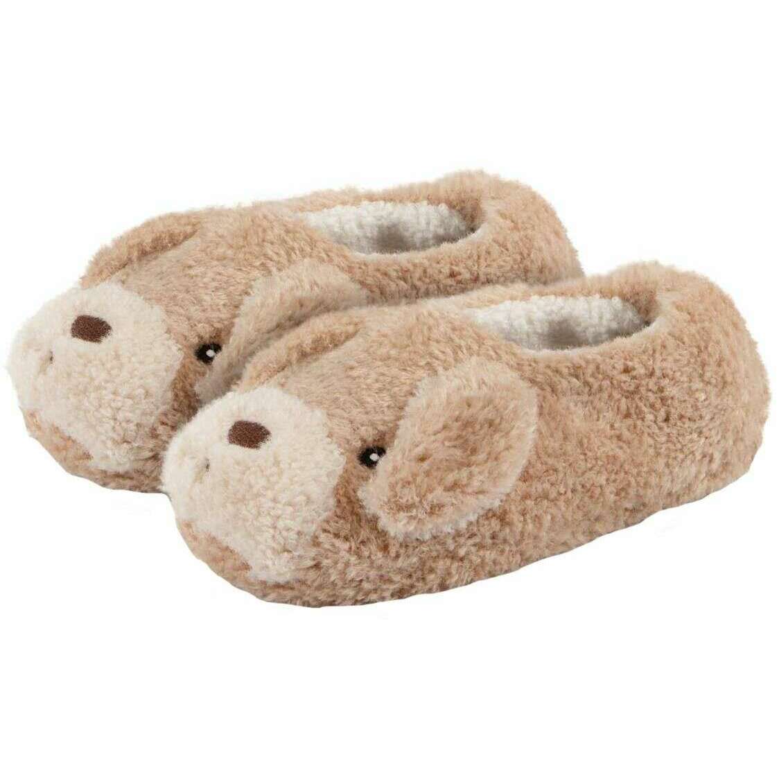 Totes Toasties Novelty Dog Full Back Slippers - Beige