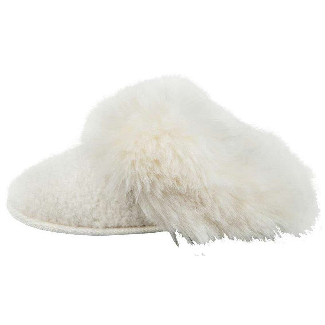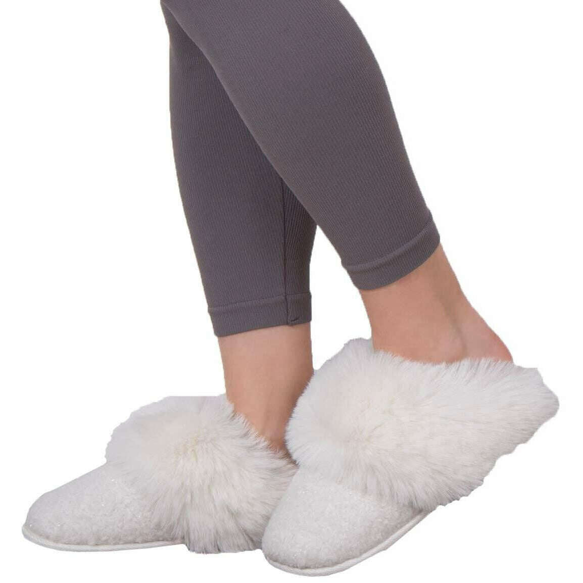 Totes Toasties Sparkle Textured Faux Fur Mule Slippers - Cream