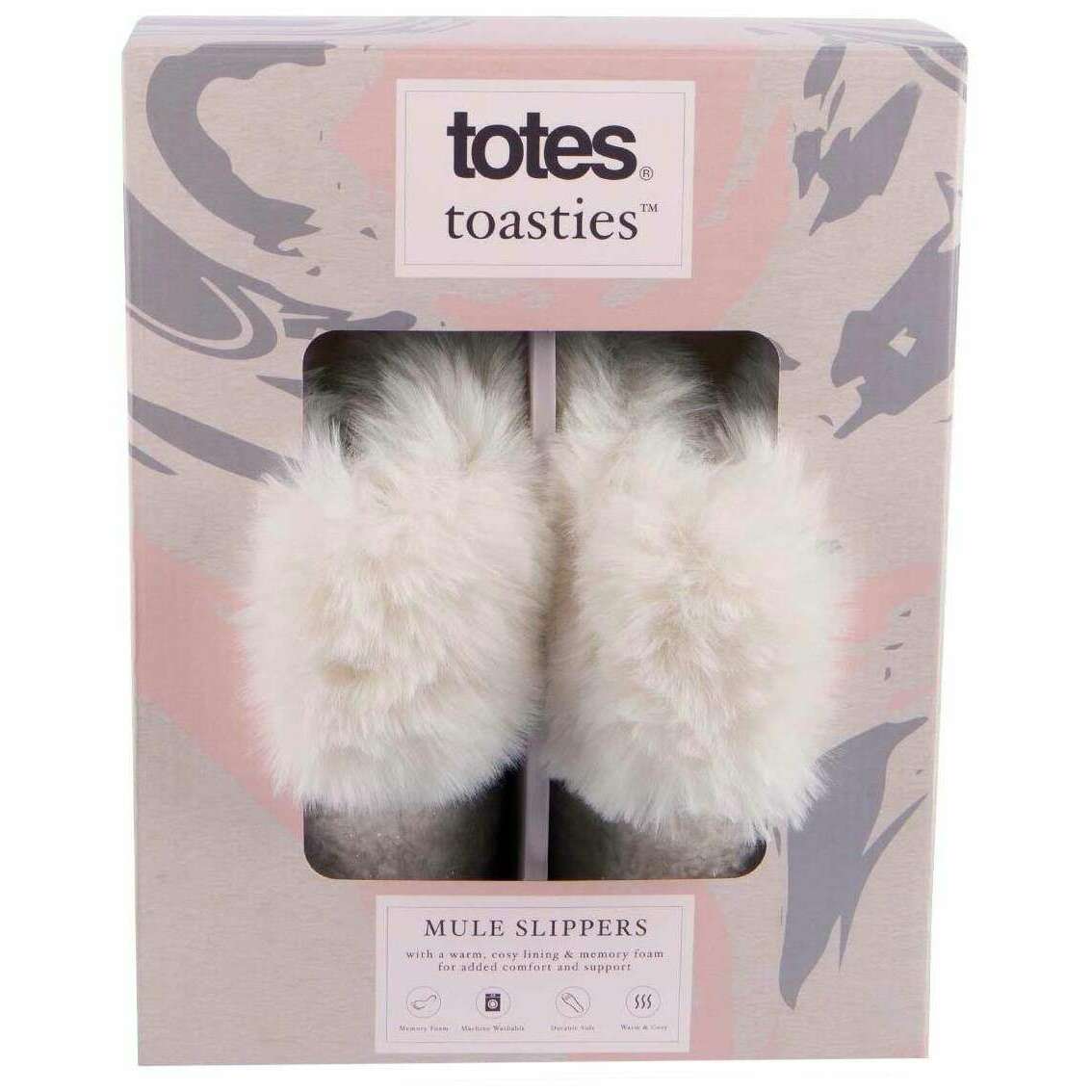 These women's sparkle textured faux fur mule slippers have been made from 100% polyester and textile tpr outsole, featured in a cream colour and are from the brand Totes Toasties. Also the cream slippers are designed in a plain pattern, All the slippers come complete with totes toasties packaging. The Totes Toasties Sparkle Textured Faux Fur Mule Slippers - Cream are a classic that are loved by many and will become a frequently worn piece in your collection. These slippers are lined with faux fur keeping your feet nice and toasty whilst roaming around the house with added memory foam and a durable sole for comfort and support. The slide on mule design allows for easy removal when wanting to let your feet breathe. Make these your winter staple!