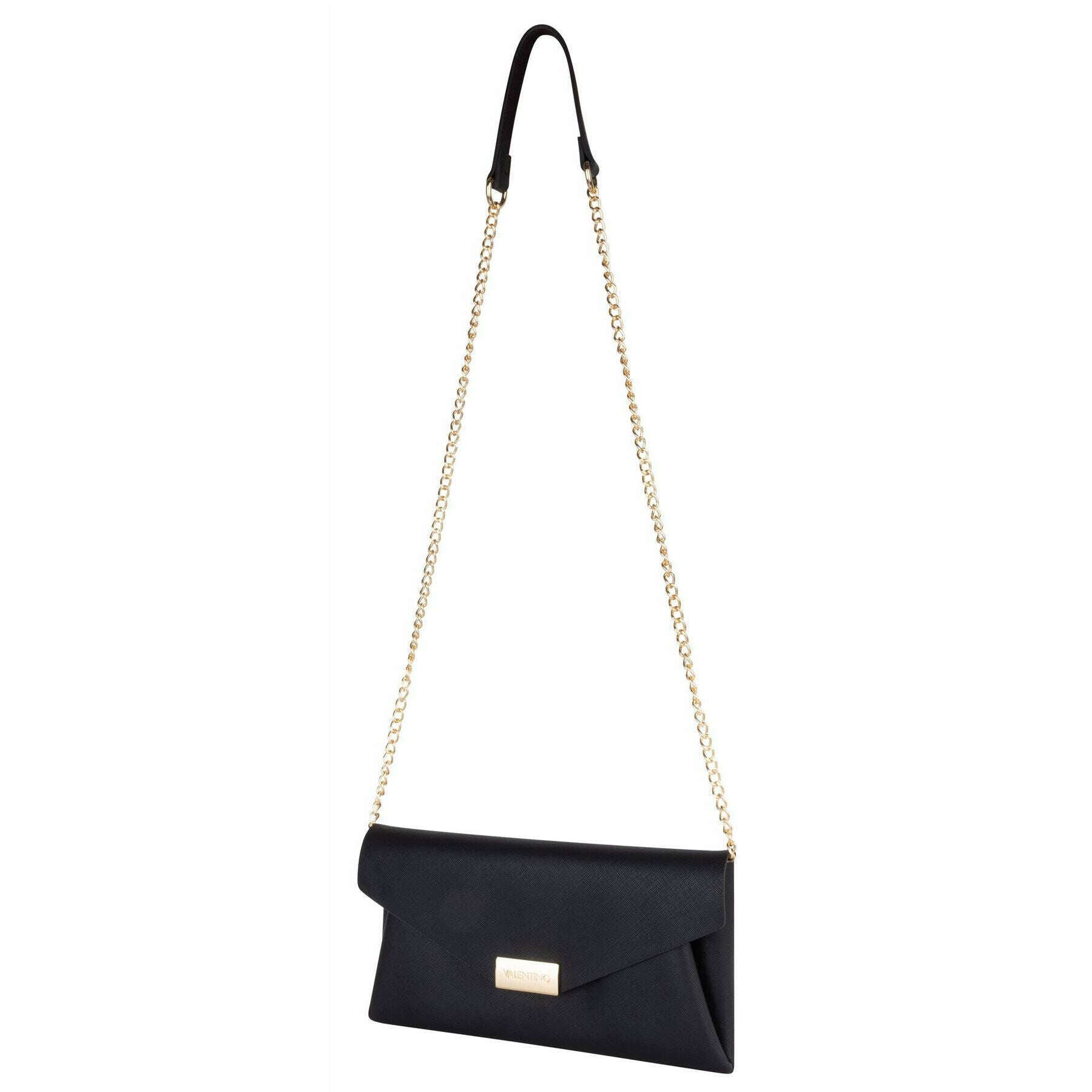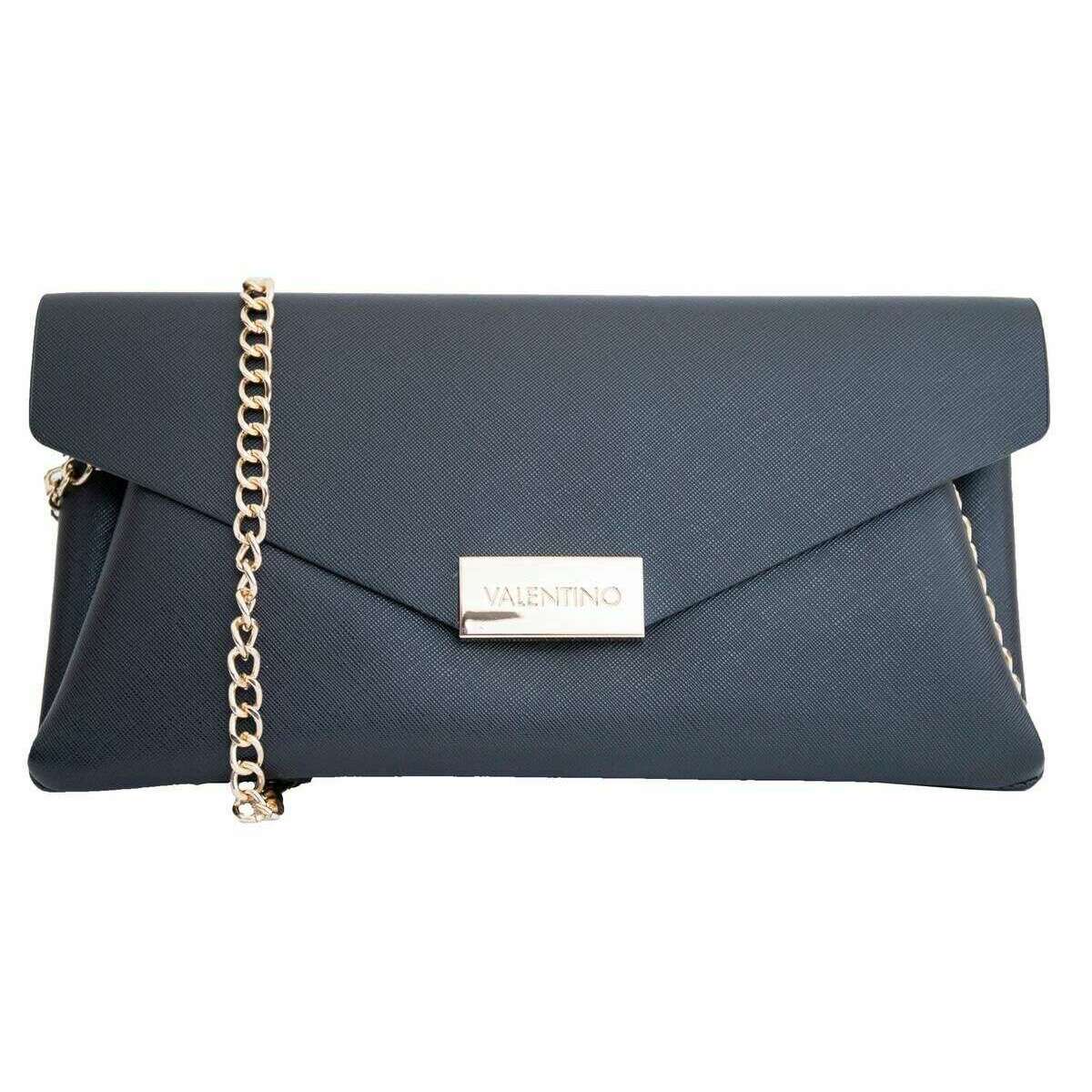 This women's arpie envelope bag by the brand Valentino is made from 100% polyurethane and is showcased in black. It measures 14.5cm(height) x 27.5cm(width) x 2.5cm(depth). All the bags come complete in valentino packaging. The Valentino Arpie Envelope Bag - Black features an envelope style design which is perfect for those bottomless brunches or evening cocktails with the girls. Its press stud closure ensures stylish security and the stunning chain strap allows it to sit beautifully on your shoulder, finishing your outfit off perfectly. The inside compartment has a divider through the middle, making it easy to organise your essentials.