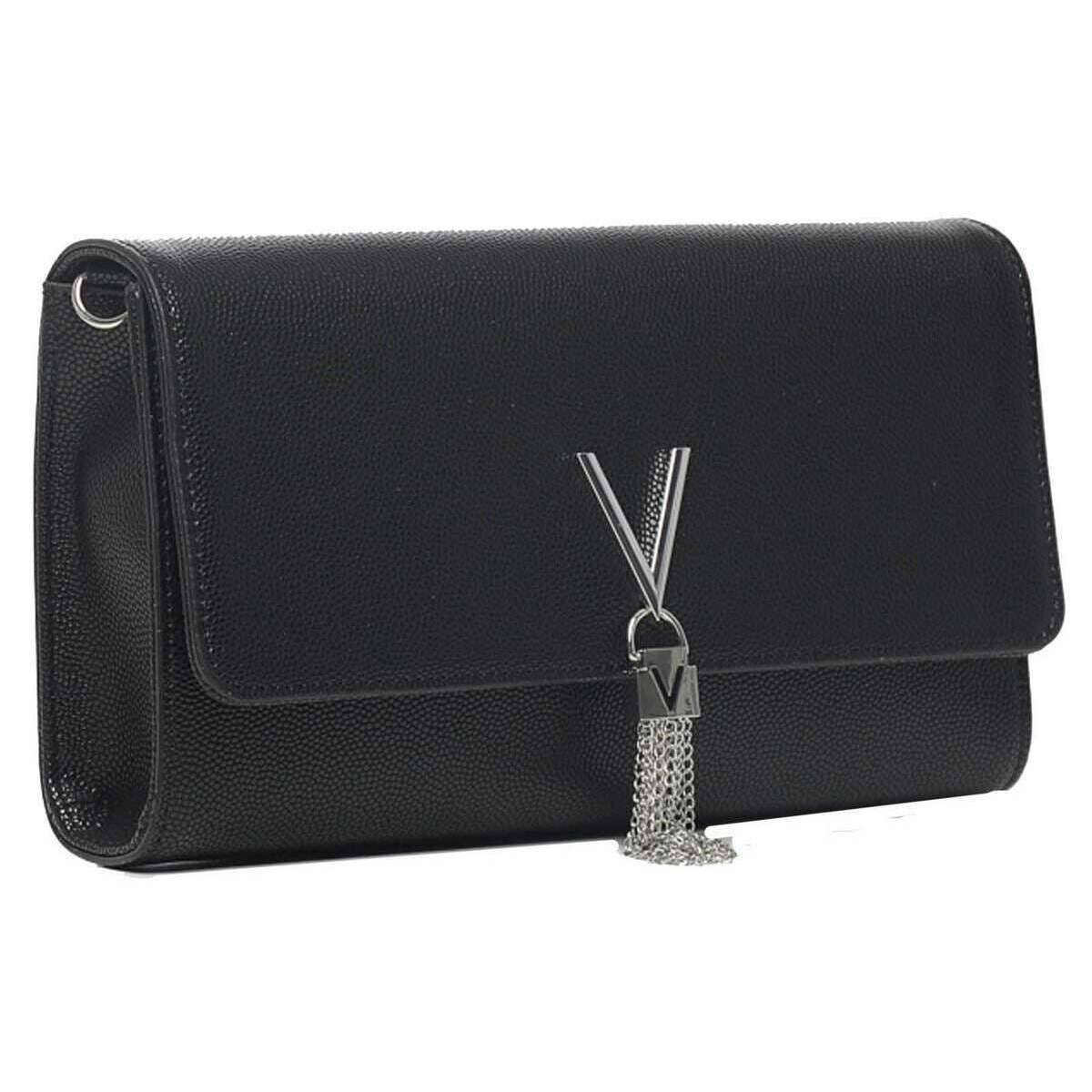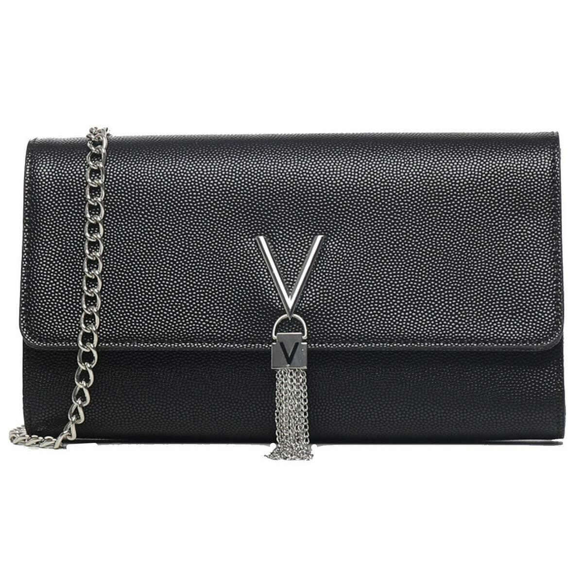 Introducing this women's divina pochette crossbody bag by Valentino, it is manufactured from 100% polyester in a nero black colour. It measures 12cm(height) x 27cm(width) x 4.5cm(depth). All the bags come complete with valentino packaging. The Valentino Divina Pochette Crossbody Bag - Nero Black will give you a luxurious accessory and timeless charm. It s the perfect size to carry with you to store your everyday essentials. The exterior showcases an elegant fold over design with chain tassels. It has a detachable and adjustable cross body strap which allows you to carry it to suit the occasion.