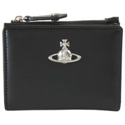This women's slim flap card holder has been made from 100% polyester, featured in a black colour and is from the brand Vivienne Westwood. It measures 9cm(height) x 10.5cm(width) x 2.5cm(depth). All the purses come complete in vivienne westwood packaging. The Vivienne Westwood Slim Flap Card Holder - Black will make a stunning everyday purse if you want less of a bulky design that fits perfectly in pockets and smaller bags but doesn t falter on style. It has a simple press stud to open and close the card section which offers 4 card slots and on the other side is a zipped coin compartment. The iconic orb sits proudly on the front giving you the perfect companion.