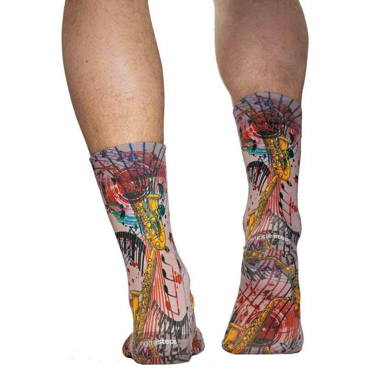 Introducing these men's saxophone socks by Wigglesteps, they are manufactured from 45% cotton, 36% polyester, 17% polamide and 2% elastane in a red/yellow colour. Also the red/yellow socks are designed in a unique pattern, It is recommended to wash at 30 degrees, do not iron, do not tumble dry and do not bleech to keep these socks in good condition. All the socks come complete with wigglesteps tags. The Wigglesteps Saxophone Socks - Red/Yellow feature a soft Organic cotton inside which is comfortable against the skin while the outside is Dry-Touch polyester which ensures they dry quickly while still being breathable. They are designed to prevent that horrible sticky feeling when worn for long periods making them a must have for everyday. Their fun and vibrant design make them the perfect choice for a gift or just if you want to liven up your wardrobe.