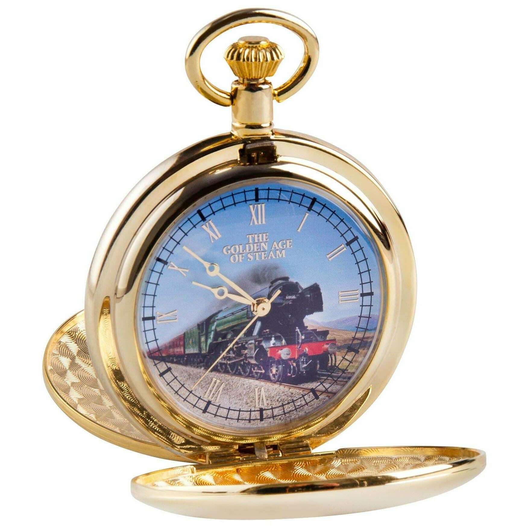 Manufactured from gold plated metal is this gold men's mechanical railway pocket watch by the designer Woodford. It measures 4.7cm(diameter) x 1.7cm(depth). All the watches come complete with woodford packaging. The Woodford Mechanical Railway Pocket Watch - Gold is the one for you if you are a true train enthusiast and is looking for a special piece way to track your time. This watch features a twin lidded design and runs off a mechanical movement so you can be assured that efficient time keeping will be effortless. The added details with beautiful roman numeral dials, delicate hands and subtle branding near the centre it is an essential for any gentleman.