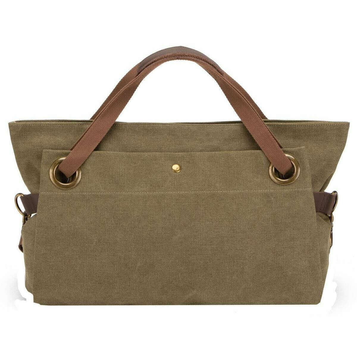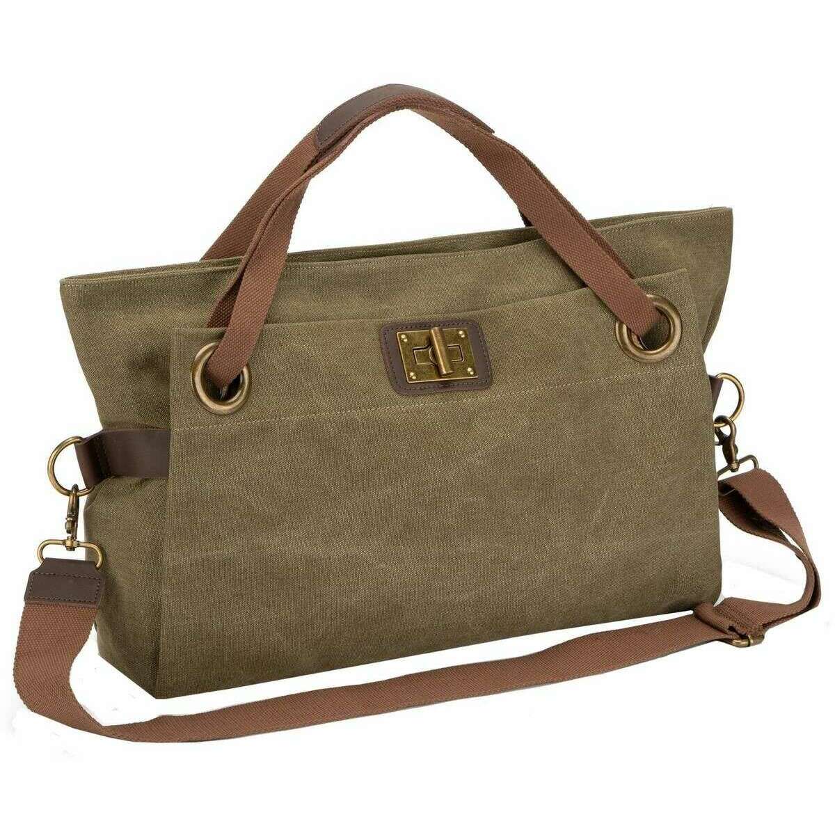 This unisex pont des arts cross body bag has been made from 100% faded cotton canvas and split cowhide leather, featured in a green colour and is from the brand ZEDE. It measures 43cm(height) x 30cm(width) x 14cm(depth). All the bags come complete with zede packaging. The ZEDE Pont Des Arts Cross Body Bag - Olive Green is a three in one bag by being able to wear it by hand, crossbody and over the shoulder with the adjustable detachable strap and two large handles. Featuring a zipper closure for a secure wear, a large main compartment for ample storage, exterior pockets and interior pockets for more storage and great organisation. This gorgeous design makes this the perfect bag to elevate any outfit whilst carrying your essentials in style. Crafted from washed cotton canvas and split leather ensures a water-repellent protection and durability.