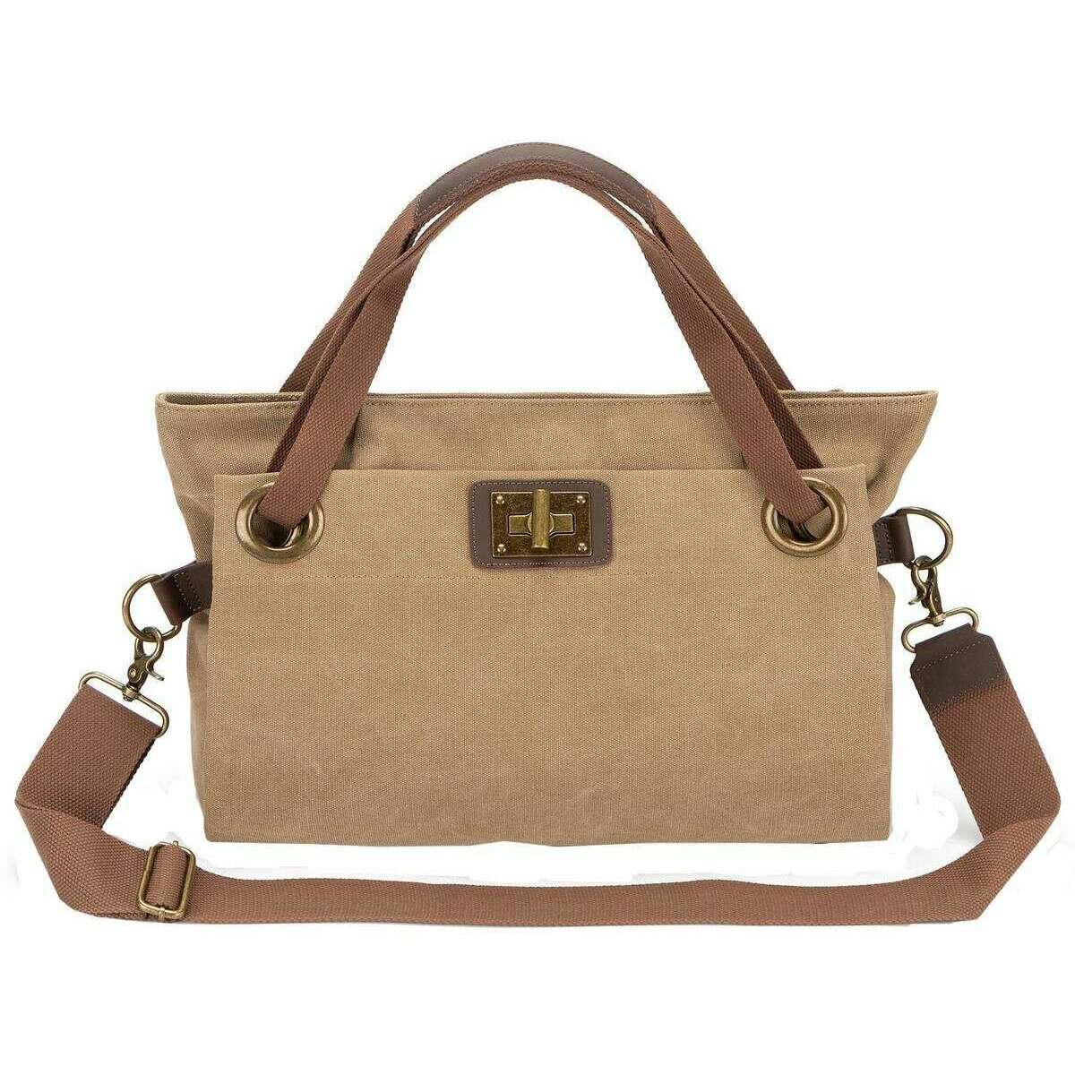 This well made unisex pont des arts medium cross body bag from ZEDE comes in a beige khaki colour and is manufactured from 100% faded cotton canvas and split cowhide leather. It measures 39cm(height) x 26cm(width) x 13cm(depth). All the bags come complete with zede packaging. The ZEDE Pont Des Arts Medium Cross Body Bag - Beige Khaki is a three in one bag by being able to wear it by hand, crossbody and over the shoulder with the adjustable detachable strap and two large handles. Featuring a zipper closure for a secure wear, a large main compartment for ample storage, exterior pockets and interior pockets for more storage and great organisation. This gorgeous design makes this the perfect bag to elevate any outfit whilst carrying your essentials in style. Crafted from washed cotton canvas and split leather ensures a water-repellent protection and durability.