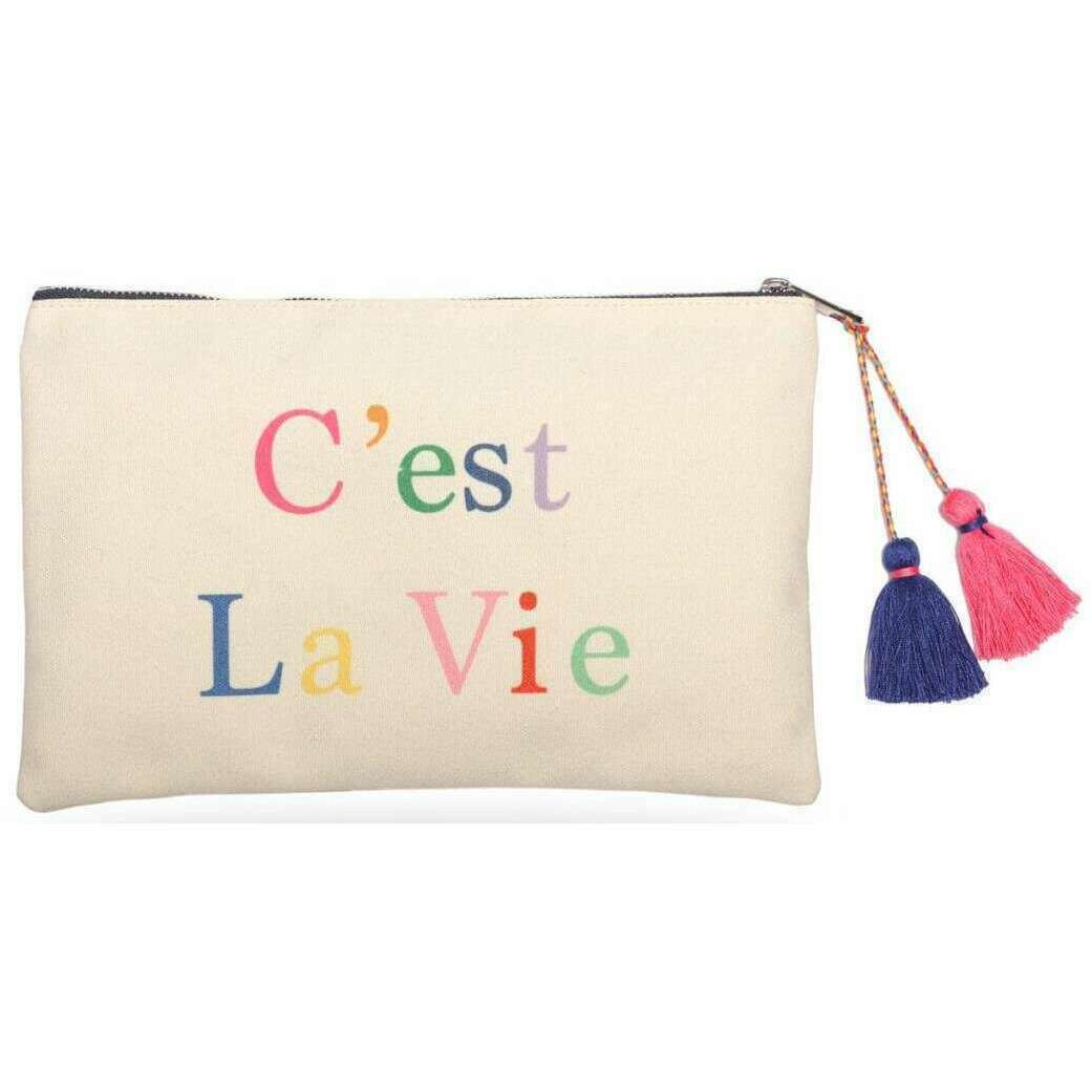 Introducing this women's c'est la vie cotton clutch by Zelly, it is manufactured from 70% polyester and 30% cotton in a cream colour. It measures 17.5cm(height) x 27.5cm(width). It is recommended to machine wash at 30 degrees to keep this bag in good condition. All the bags come complete with zelly tags. The Zelly C'est La Vie Cotton Clutch - Cream can be doubled up as two different bags which include a wash bag or a clutch bag. Featuring a colourful print on the front and a detachable tassel adds a playful and fun touch. This pouch is a great size to fit all of your essentials and more, but still a perfect size for carrying out and about. This day-to-night pouch makes for a perfect gift for your loved ones.