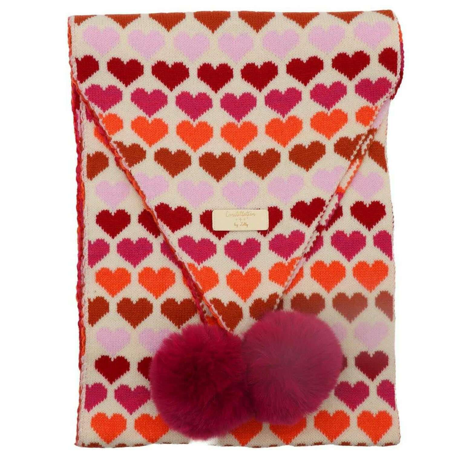 Zelly Heart Pom Pom Scarf - Pink/Red
