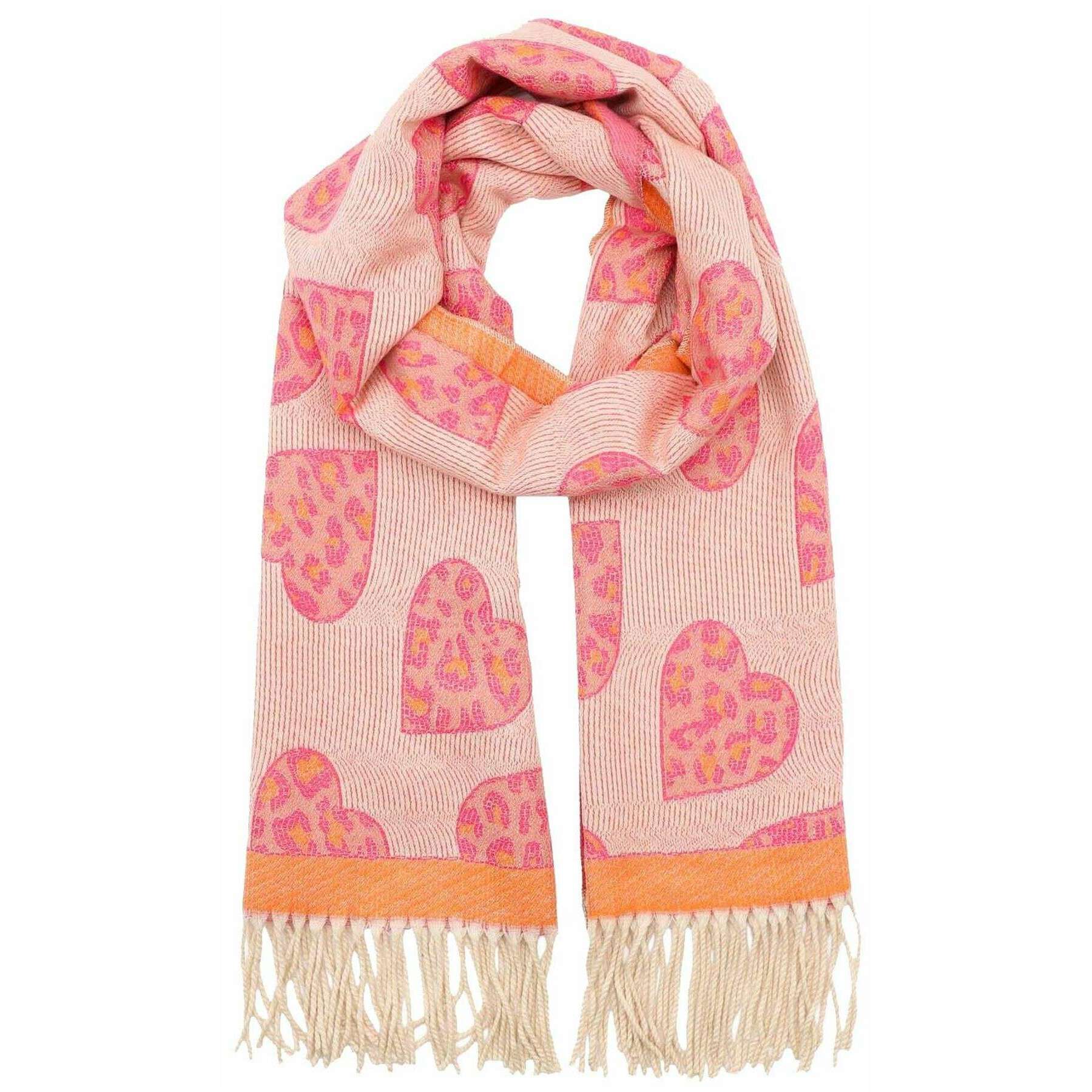This hearts winter weight scarf for women is fashioned by the brand Zelly in a pink colour and is made from 100% viscose. It measures 200cm(height) x 65cm(width). It is recommended to machine wash at 30 degrees to keep this scarf in good condition. All the scarves come complete in zelly packaging. The Zelly Hearts Winter Weight Scarf - Pink is a vibrant choice for your winter wardrobe, making you look elegant and stylish while wrapping you up all warm and cosy. The beautiful soft fabric will give you the perfect winter hug when out and about during the cold weather and will brighten up your look, without compromising breathability making it a must have for your collection.